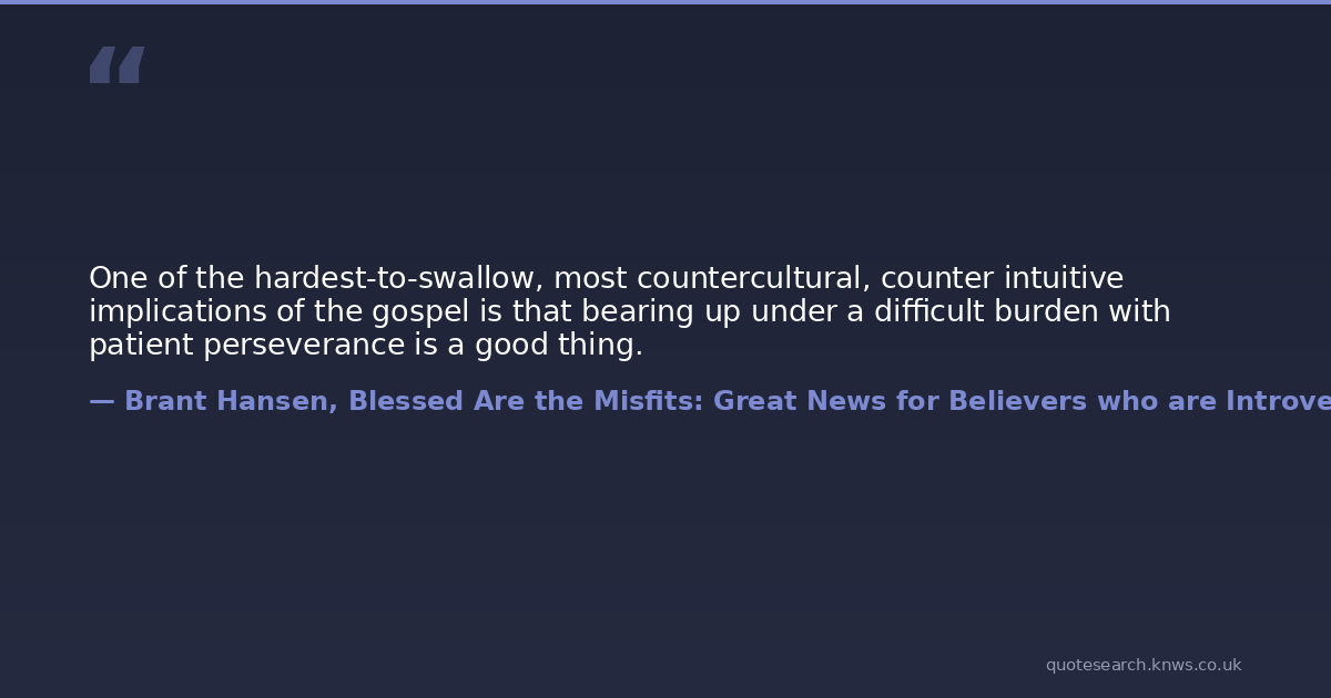 One of the hardest-to-swallow, most countercultural, counter intuitive implications of the gospel is that bearing up under a difficult burden with patient perseverance is a good thing.