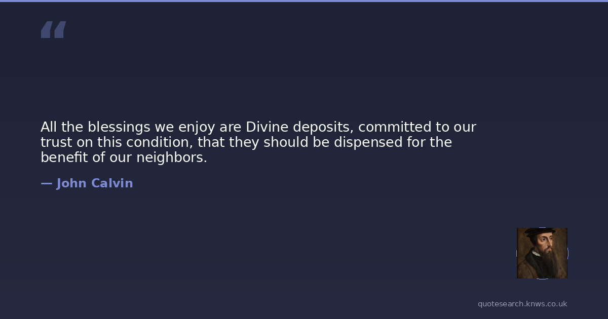 All the blessings we enjoy are Divine deposits, committed to our trust on this condition, that they should be dispensed for the benefit of our neighbors.