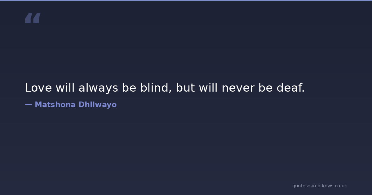 Love will always be blind, but will never be deaf. blind-quote deaf-quotes inspirational-quotes inspirational-quotes-about-life love-quote love-quotes love-quotes-and-sayings matshona-dhliwayo-quotes Download Image Share on X Share on Facebook Copy Link