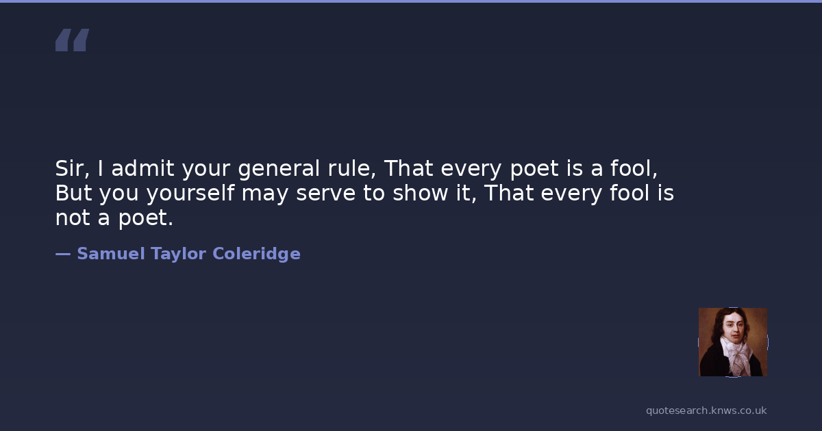 Sir, I admit your general rule, That every poet is a fool, But you yourself may serve to show it, That every fool is not a poet.