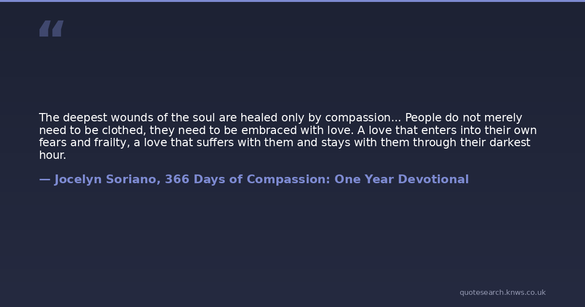 The deepest wounds of the soul are healed only by compassion... People do not merely need to be clothed, they need to be embraced with love. A love that enters into their own fears and frailty, a love that suffers with them and stays with them through their darkest hour.