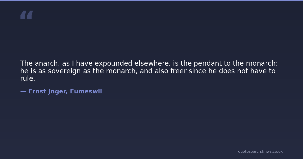 The anarch, as I have expounded elsewhere, is the pendant to the monarch; he is as sovereign as the monarch, and also freer since he does not have to rule.