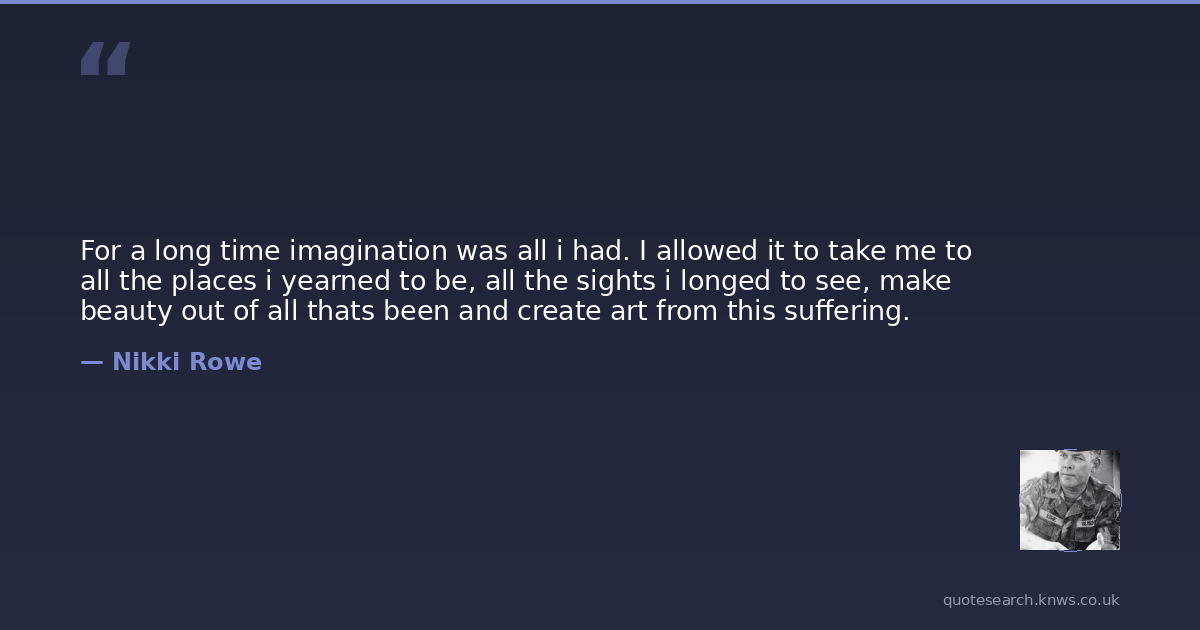 For a long time imagination was all i had. I allowed it to take me to all the places i yearned to be, all the sights i longed to see, make beauty out of all thats been and create art from this suffering.
