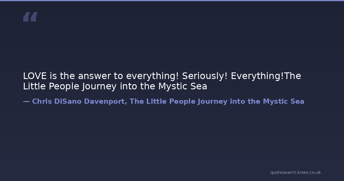 LOVE is the answer to everything! Seriously! Everything!The Little People Journey into the Mystic Sea