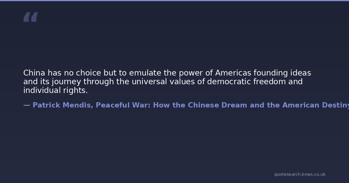 China has no choice but to emulate the power of Americas founding ideas and its journey through the universal values of democratic freedom and individual rights.