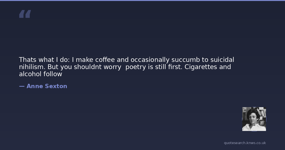 Thats what I do: I make coffee and occasionally succumb to suicidal nihilism. But you shouldnt worry poetry is still first. Cigarettes and alcohol follow