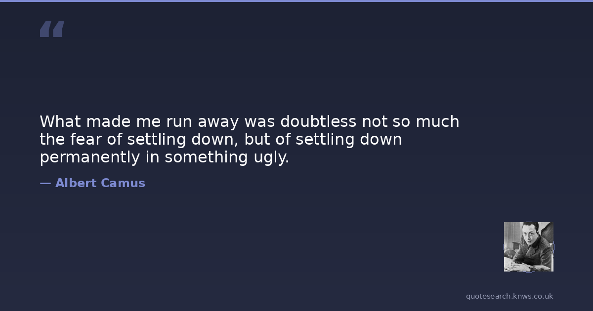 What made me run away was doubtless not so much the fear of settling down, but of settling down permanently in something ugly.