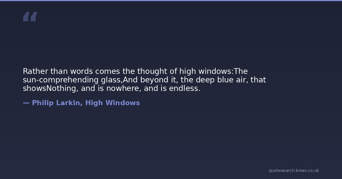 Rather than words comes the thought of high windows:The sun-comprehending glass,And beyond it, the deep blue air, that showsNothing, and is nowhere, and is endless.
