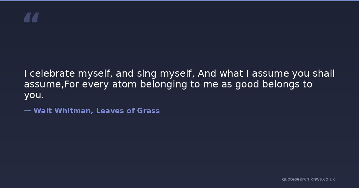 I celebrate myself, and sing myself, And what I assume you shall assume,For every atom belonging to me as good belongs to you.