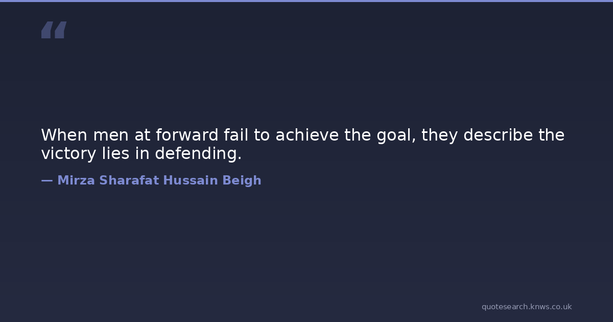 When men at forward fail to achieve the goal, they describe the victory lies in defending.