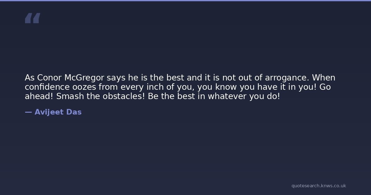As Conor McGregor says he is the best and it is not out of arrogance. When confidence oozes from every inch of you, you know you have it in you! Go ahead! Smash the obstacles! Be the best in whatever you do!