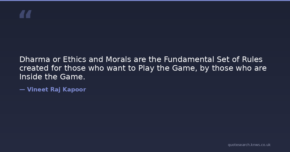 Dharma or Ethics and Morals are the Fundamental Set of Rules created for those who want to Play the Game, by those who are Inside the Game.