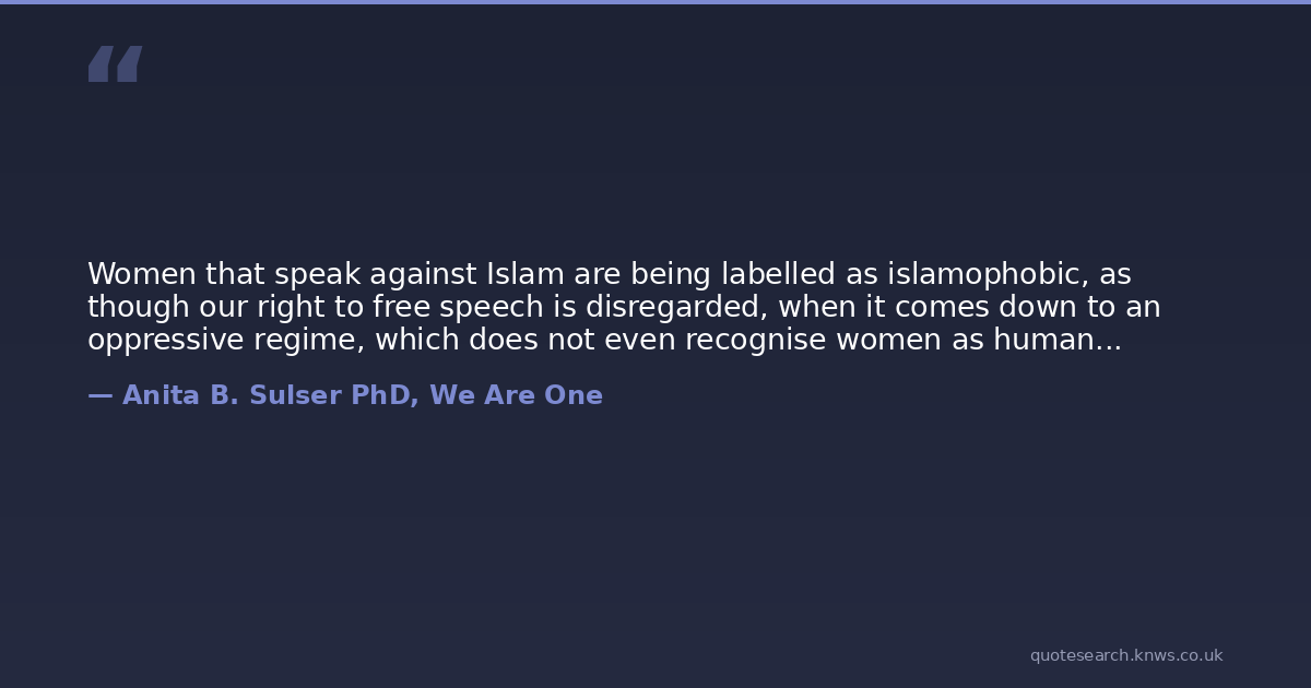 Women that speak against Islam are being labelled as islamophobic, as though our right to free speech is disregarded, when it comes down to an oppressive regime, which does not even recognise women as human...