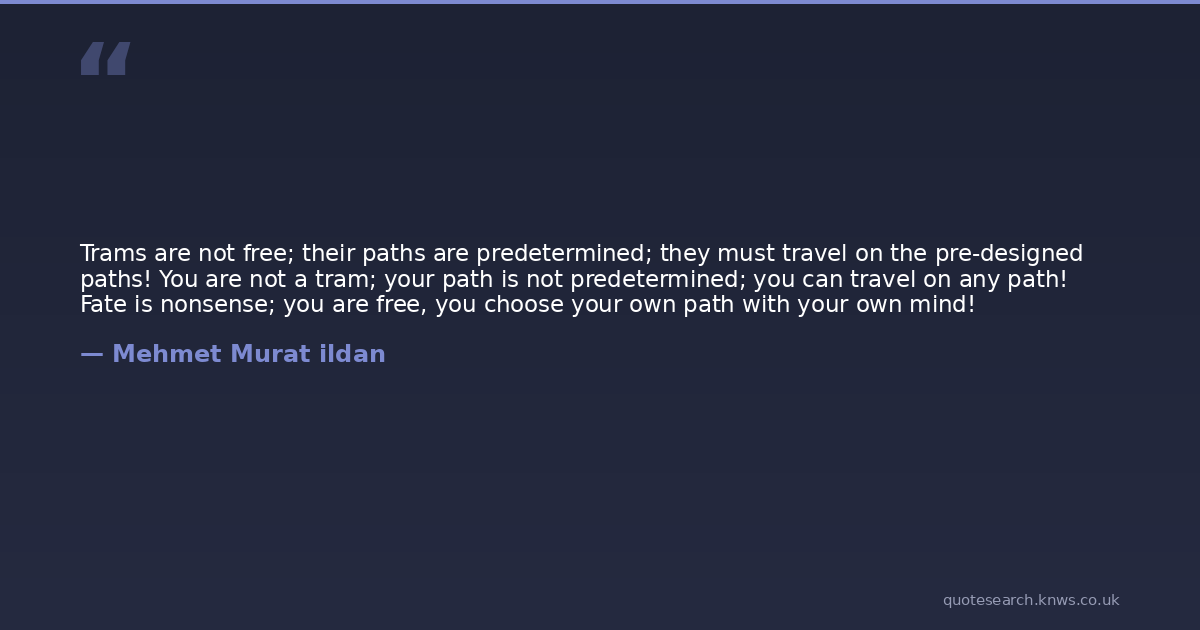 Trams are not free; their paths are predetermined; they must travel on the pre-designed paths! You are not a tram; your path is not predetermined; you can travel on any path! Fate is nonsense; you are free, you choose your own path with your own mind!