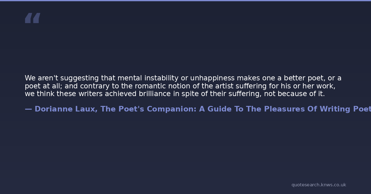 We aren't suggesting that mental instability or unhappiness makes one a better poet, or a poet at all; and contrary to the romantic notion of the artist suffering for his or her work, we think these writers achieved brilliance in spite of their suffering, not because of it.