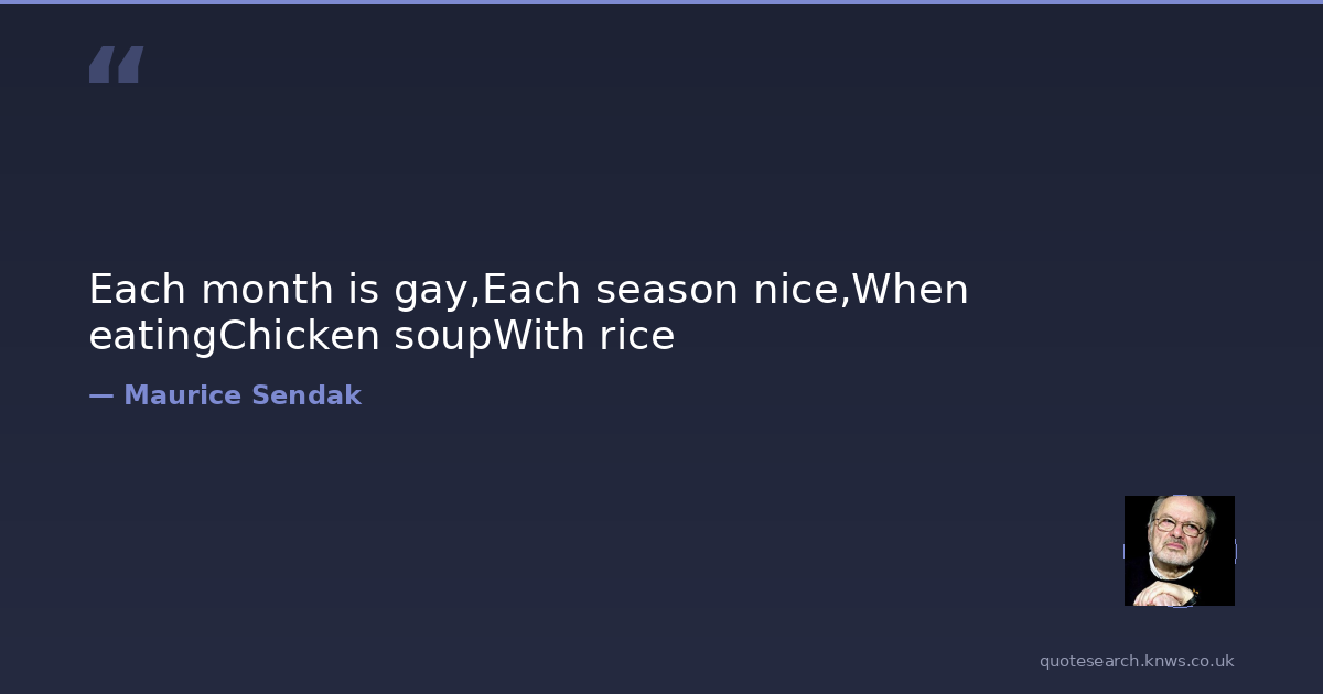 Each month is gay,Each season nice,When eatingChicken soupWith rice