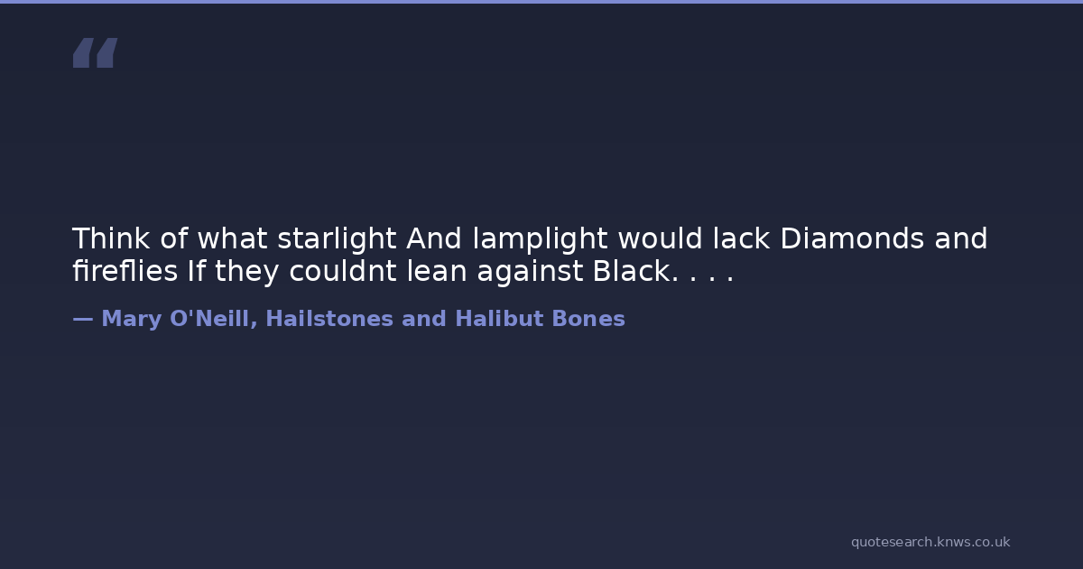 Think of what starlight And lamplight would lack Diamonds and fireflies If they couldnt lean against Black. . . .