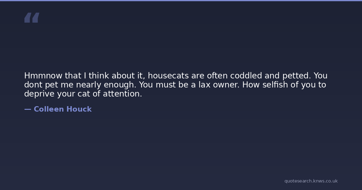 Hmmnow that I think about it, housecats are often coddled and petted. You dont pet me nearly enough. You must be a lax owner. How selfish of you to deprive your cat of attention.