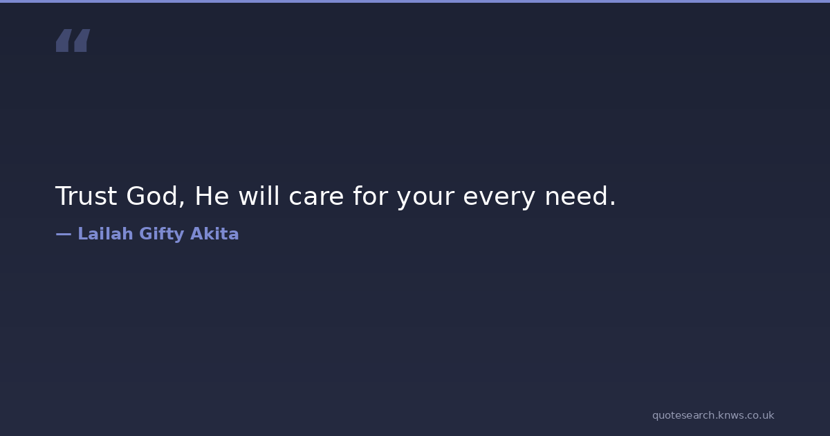 Trust God, He will care for your every need. caring-and-loving christian dont-worry faith god good-deeds helping hope need needy supportive-quotes trust Download Image Share on X Share on Facebook Copy Link