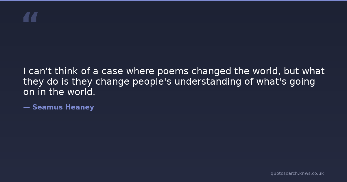I can't think of a case where poems changed the world, but what they do is they change people's understanding of what's going on in the world.