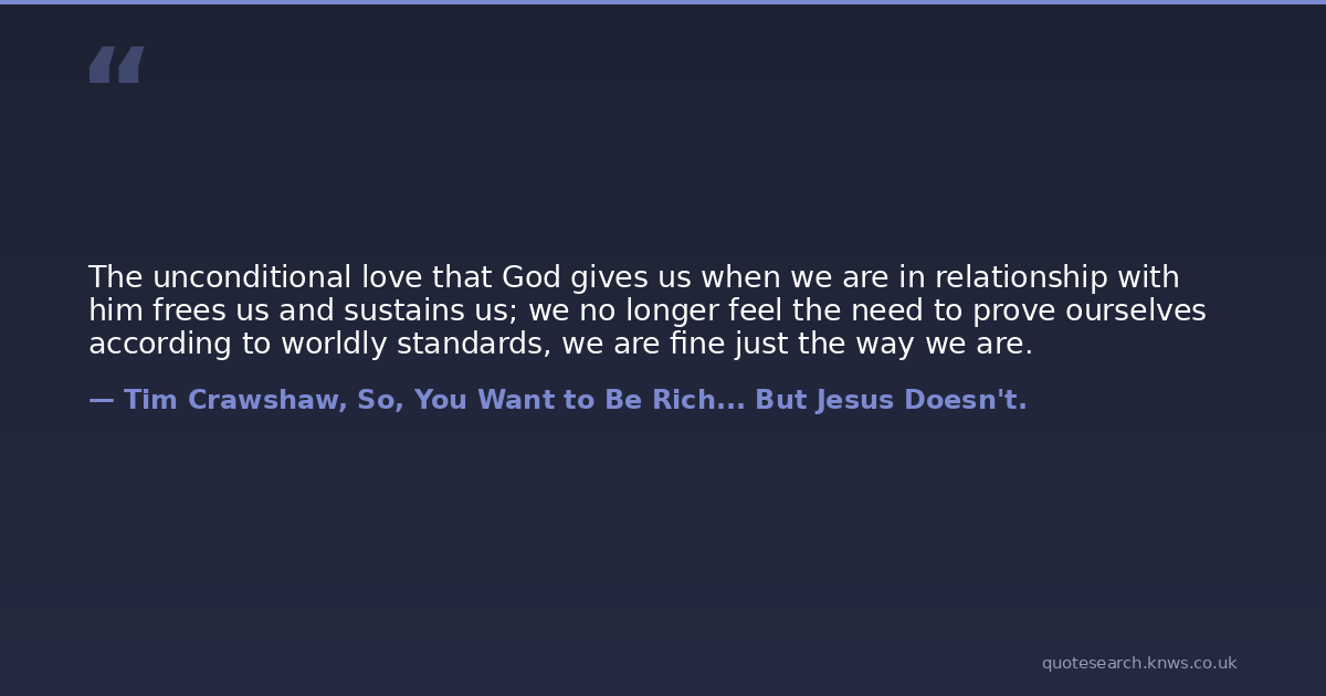 The unconditional love that God gives us when we are in relationship with him frees us and sustains us; we no longer feel the need to prove ourselves according to worldly standards, we are fine just the way we are.