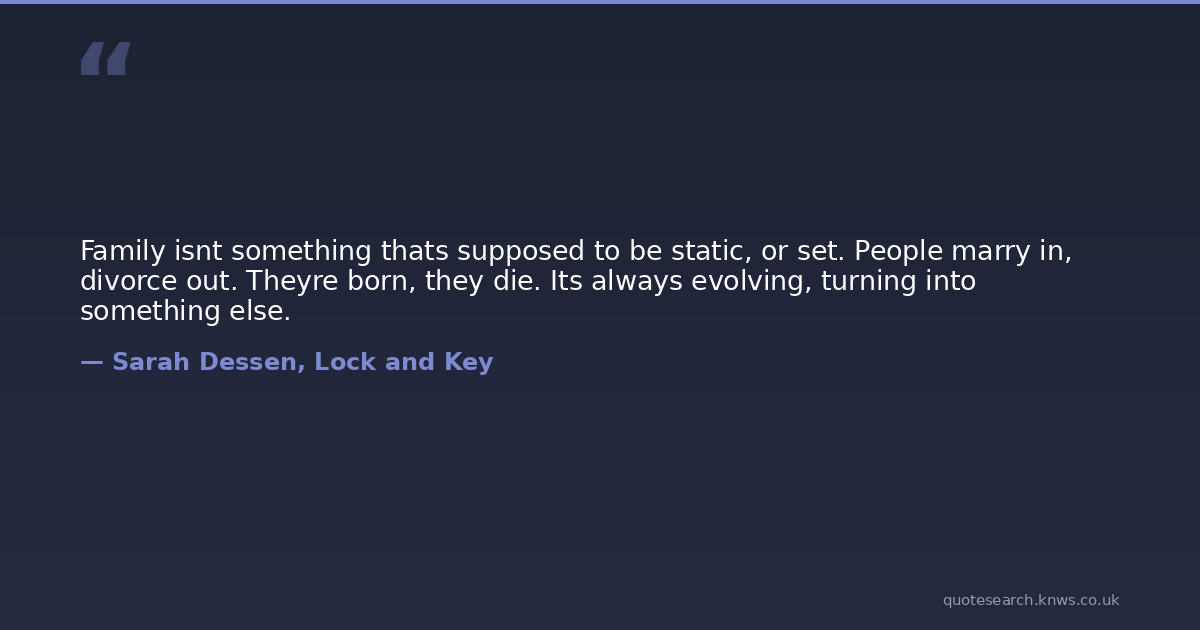Family isnt something thats supposed to be static, or set. People marry in, divorce out. Theyre born, they die. Its always evolving, turning into something else.