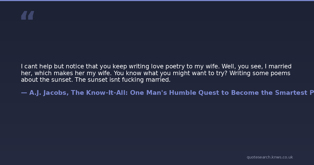 I cant help but notice that you keep writing love poetry to my wife. Well, you see, I married her, which makes her my wife. You know what you might want to try? Writing some poems about the sunset. The sunset isnt fucking married.