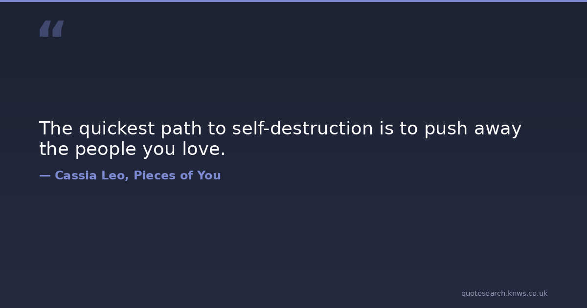 The quickest path to self-destruction is to push away the people you love. love self-destruction Download Image Share on X Share on Facebook Copy Link