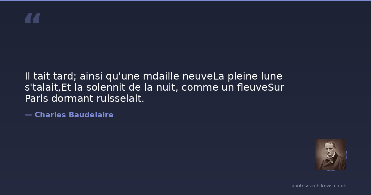 Il tait tard; ainsi qu'une mdaille neuveLa pleine lune s'talait,Et la solennit de la nuit, comme un fleuveSur Paris dormant ruisselait.