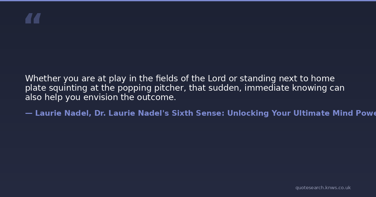 Whether you are at play in the fields of the Lord or standing next to home plate squinting at the popping pitcher, that sudden, immediate knowing can also help you envision the outcome.