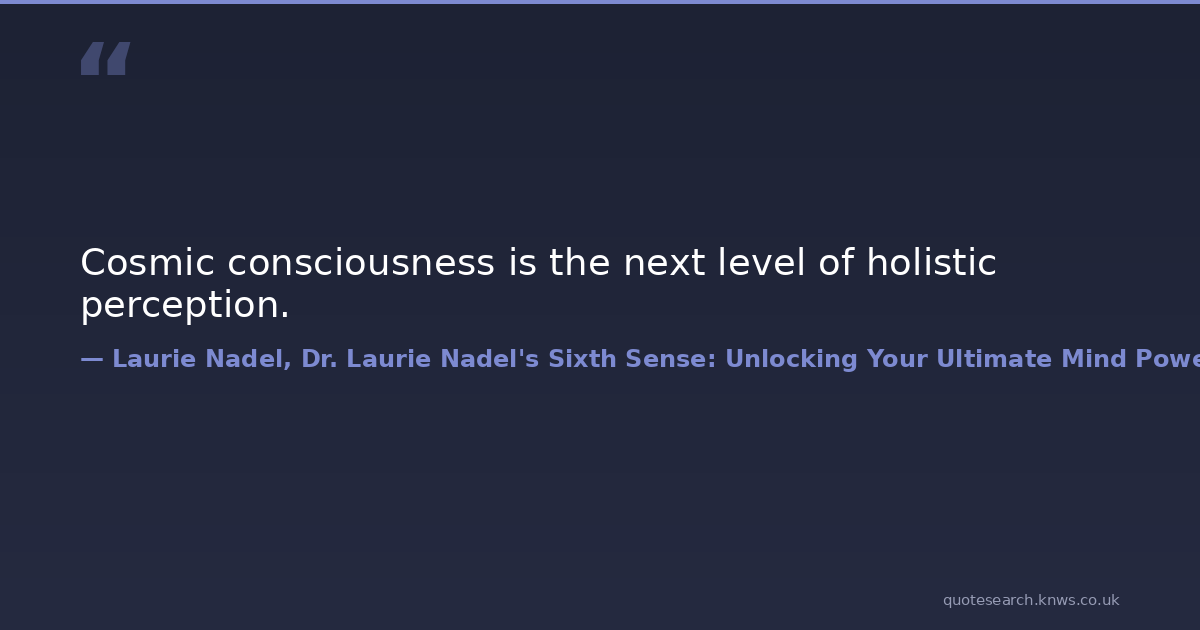 Cosmic consciousness is the next level of holistic perception.