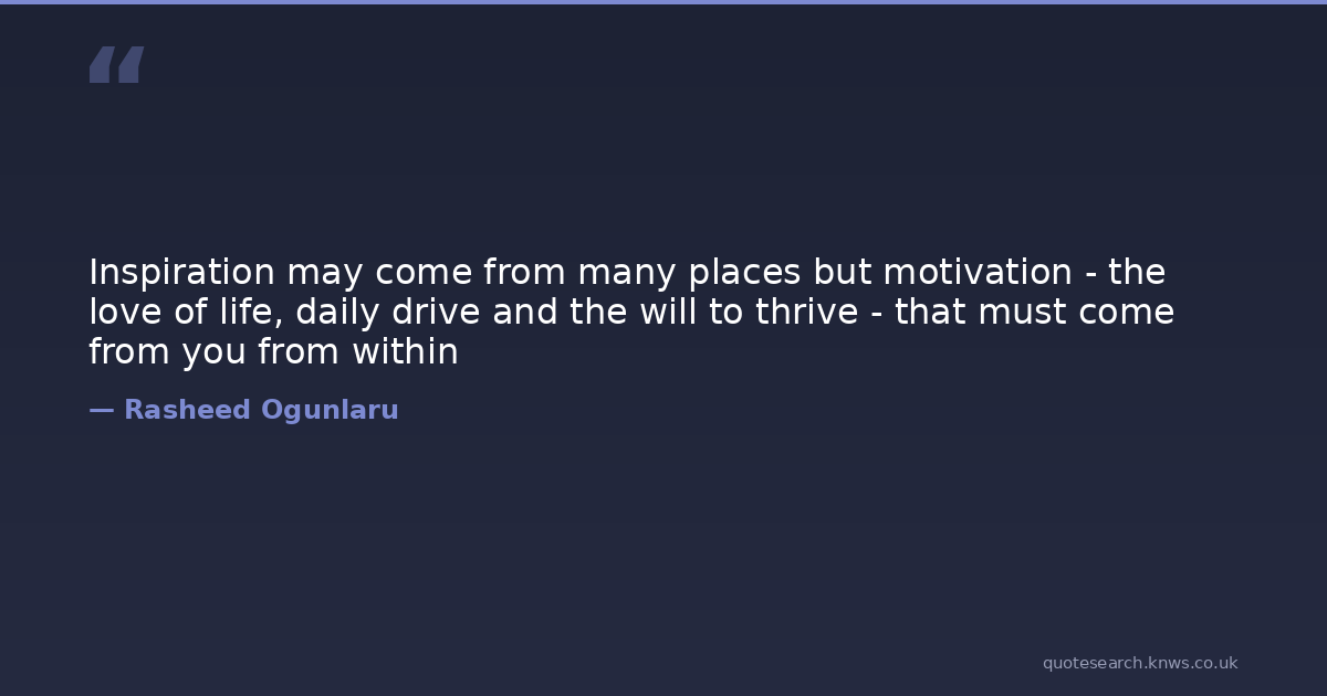 Inspiration may come from many places but motivation - the love of life, daily drive and the will to thrive - that must come from you from within