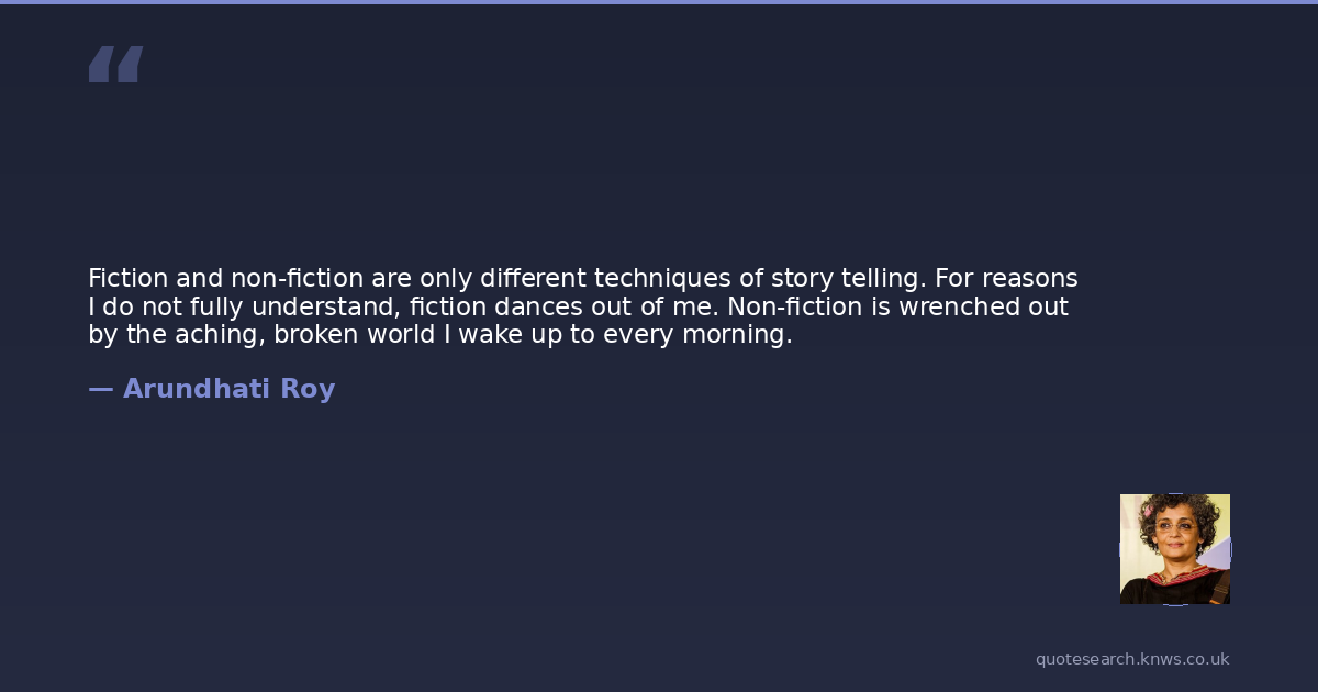 Fiction and non-fiction are only different techniques of story telling. For reasons I do not fully understand, fiction dances out of me. Non-fiction is wrenched out by the aching, broken world I wake up to every morning.