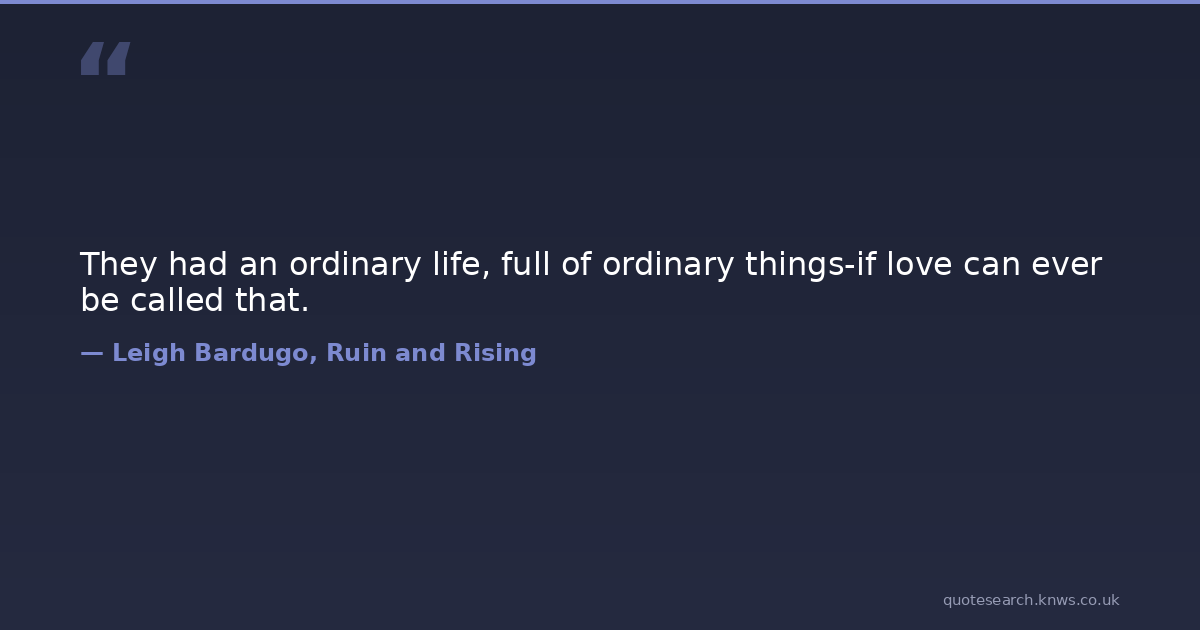 They had an ordinary life, full of ordinary things-if love can ever be called that.