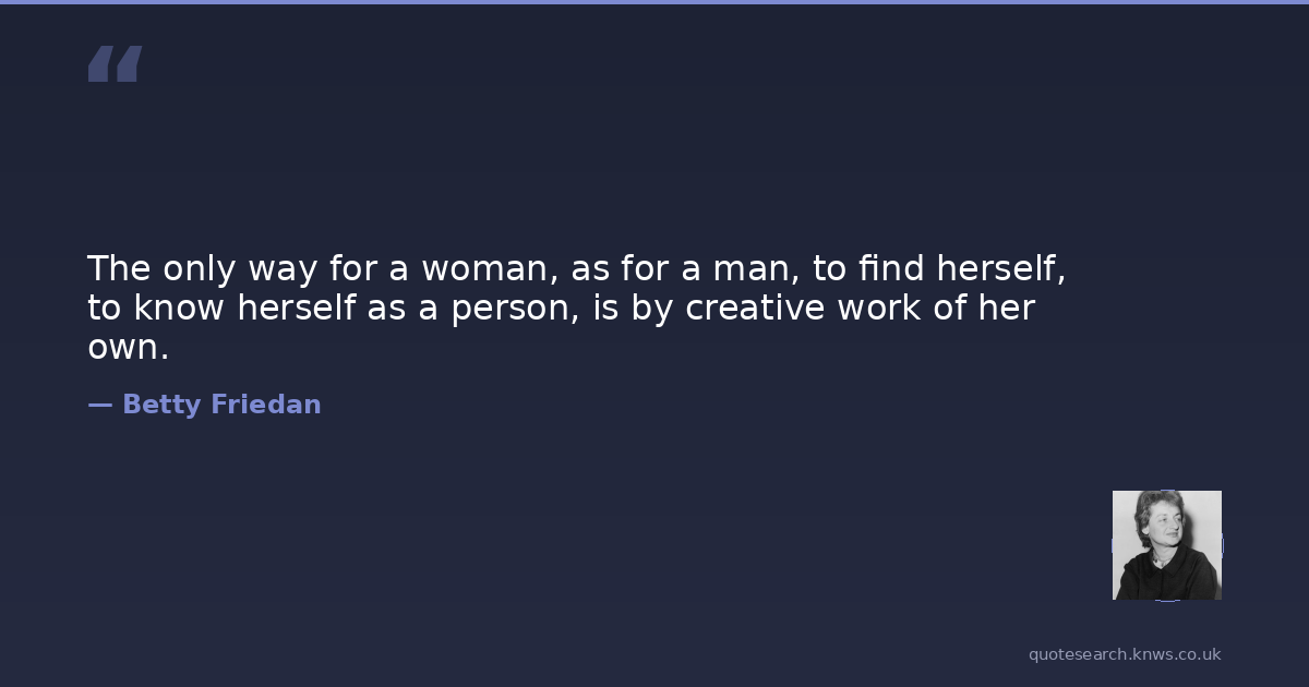 The only way for a woman, as for a man, to find herself, to know herself as a person, is by creative work of her own.