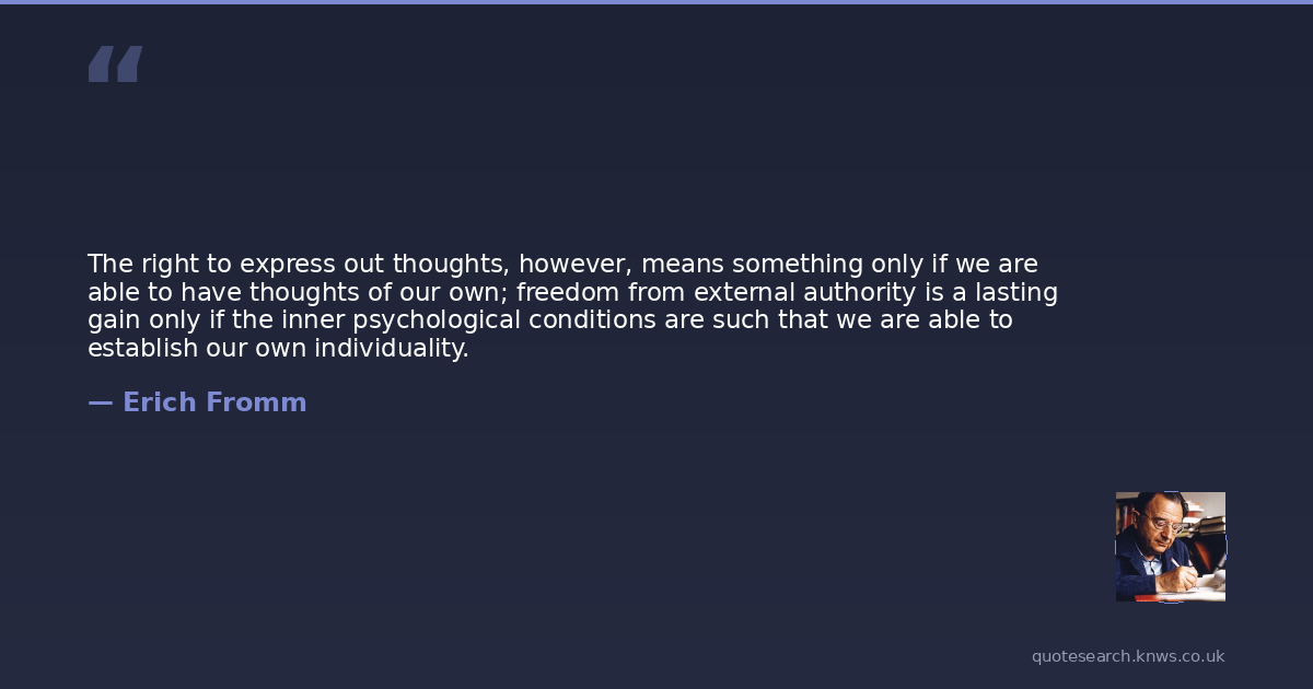 The right to express out thoughts, however, means something only if we are able to have thoughts of our own; freedom from external authority is a lasting gain only if the inner psychological conditions are such that we are able to establish our own individuality.