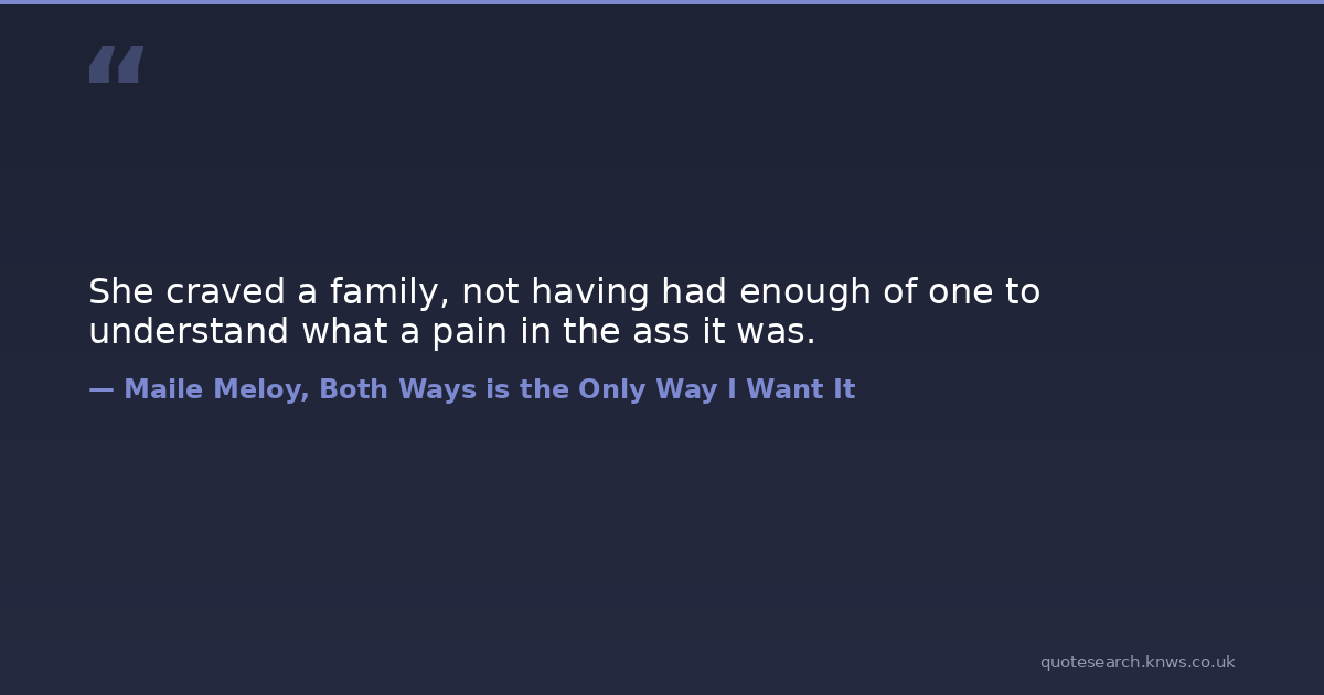 She craved a family, not having had enough of one to understand what a pain in the ass it was.