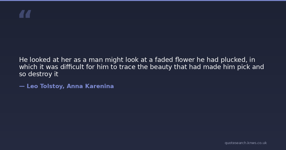 He looked at her as a man might look at a faded flower he had plucked, in which it was difficult for him to trace the beauty that had made him pick and so destroy it