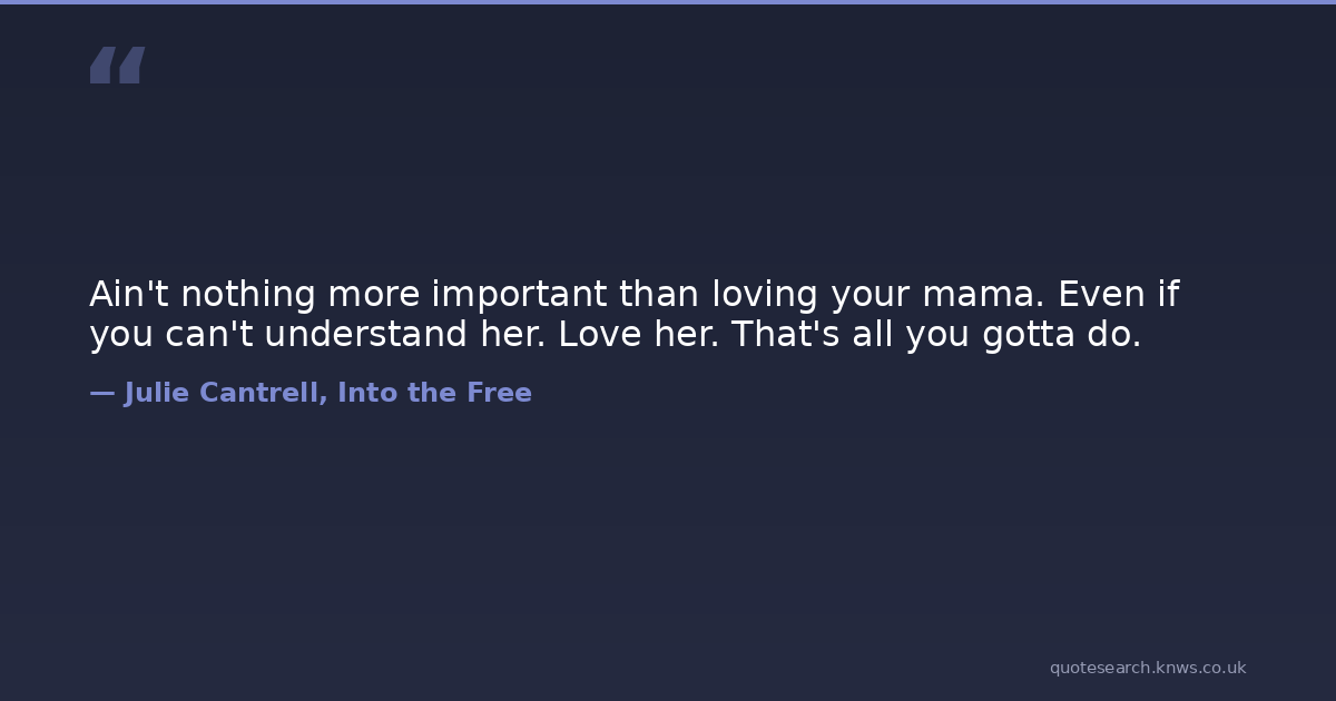Ain't nothing more important than loving your mama. Even if you can't understand her. Love her. That's all you gotta do.