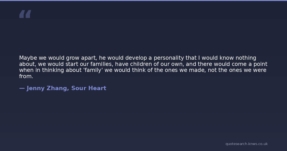 Maybe we would grow apart, he would develop a personality that I would know nothing about, we would start our families, have children of our own, and there would come a point when in thinking about 'family' we would think of the ones we made, not the ones we were from.
