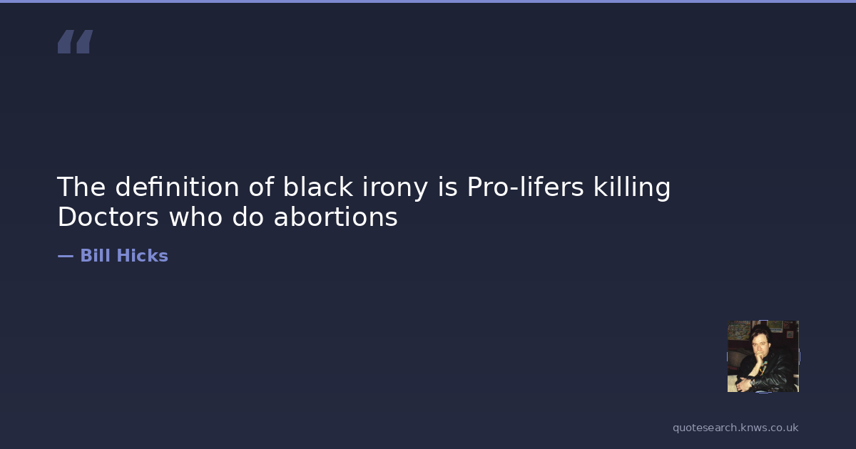 The definition of black irony is Pro-lifers killing Doctors who do abortions