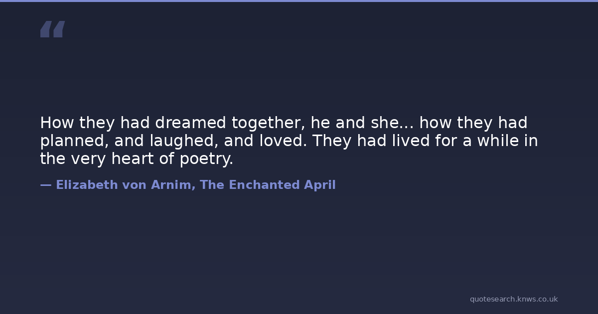How they had dreamed together, he and she... how they had planned, and laughed, and loved. They had lived for a while in the very heart of poetry.