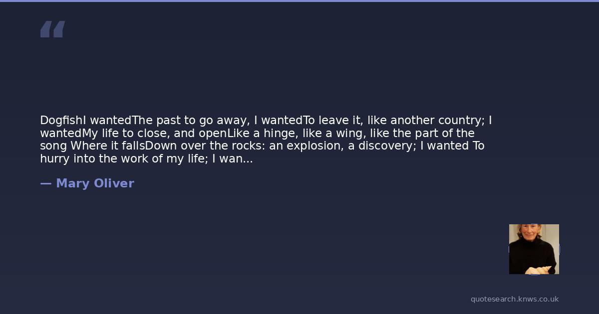 DogfishI wantedThe past to go away, I wantedTo leave it, like another country; I wantedMy life to close, and openLike a hinge, like a wing, like the part of the song Where it fallsDown over the rocks: an explosion, a discovery; I wanted To hurry into the work of my life; I wanted to know,Whoever I was, I wasAliveFor a little while.mostly, I want to be kind.And nobody, of course, is kind,Or mean,For a simple reason.And nobody gets out of it, having to Swim through the fires to stay inThis world.