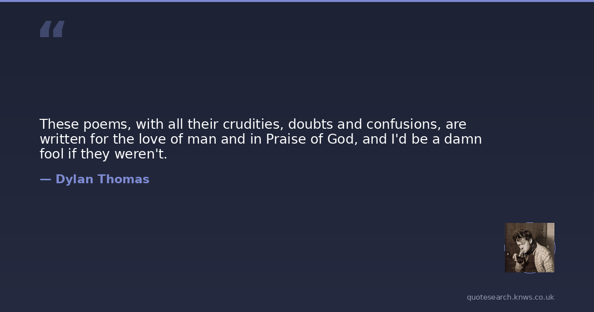 These poems, with all their crudities, doubts and confusions, are written for the love of man and in Praise of God, and I'd be a damn fool if they weren't.