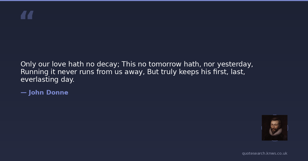 Only our love hath no decay; This no tomorrow hath, nor yesterday, Running it never runs from us away, But truly keeps his first, last, everlasting day.