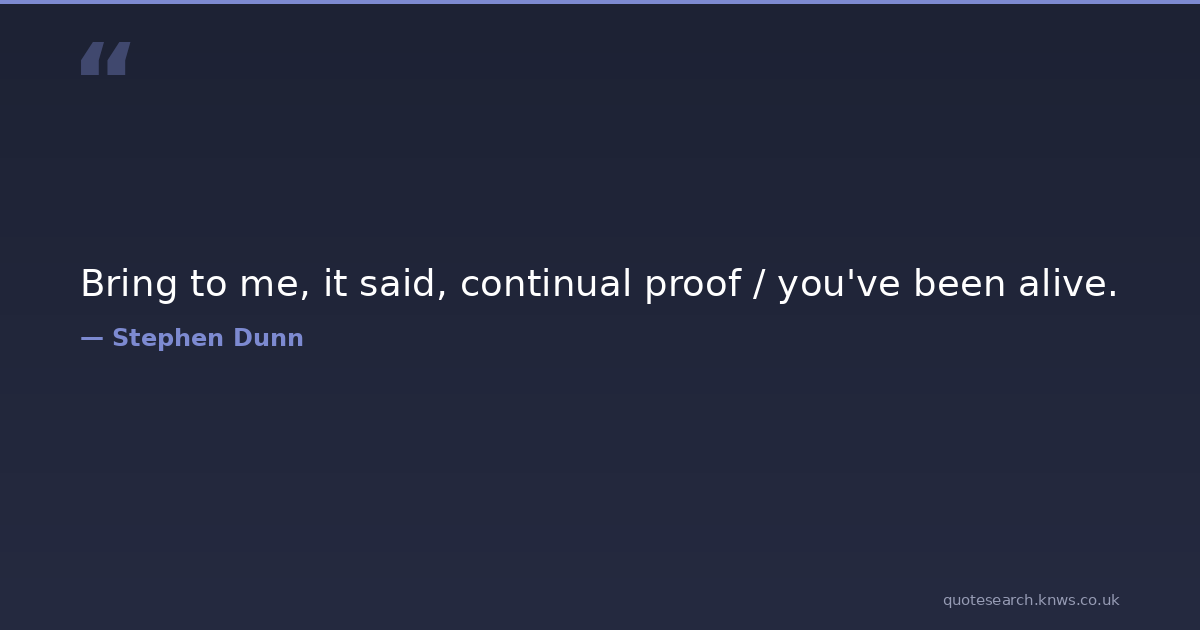 Bring to me, it said, continual proof / you've been alive.