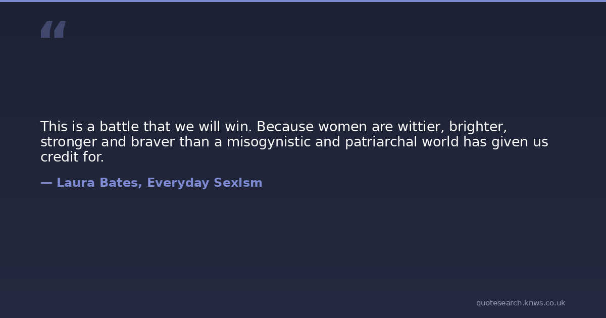 This is a battle that we will win. Because women are wittier, brighter, stronger and braver than a misogynistic and patriarchal world has given us credit for.