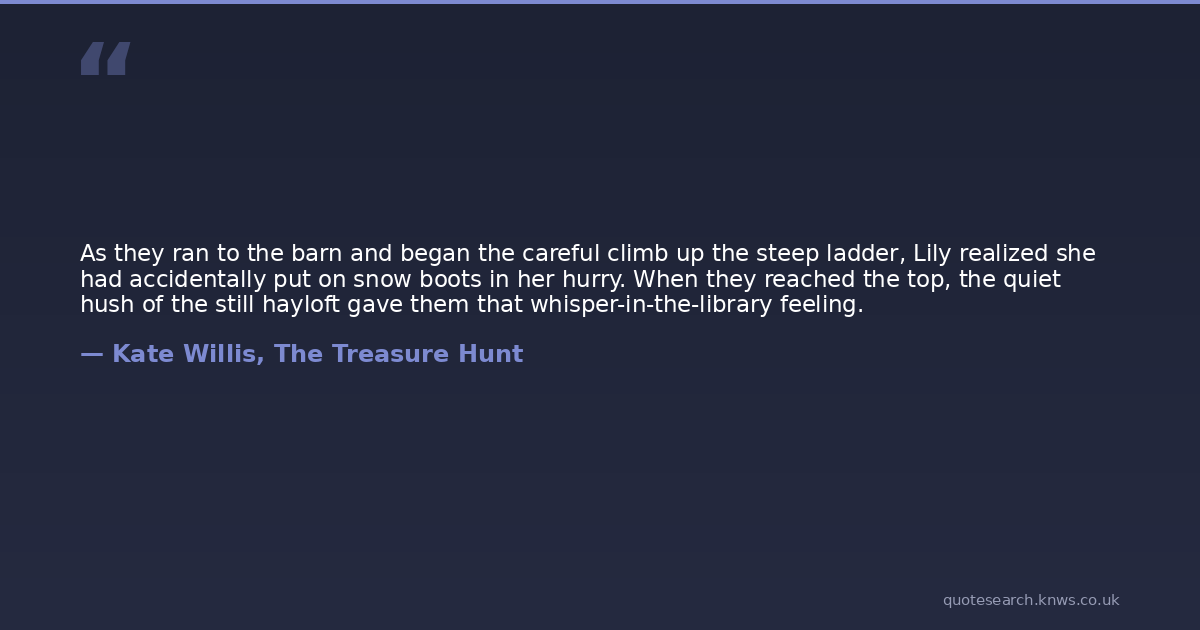 As they ran to the barn and began the careful climb up the steep ladder, Lily realized she had accidentally put on snow boots in her hurry. When they reached the top, the quiet hush of the still hayloft gave them that whisper-in-the-library feeling.