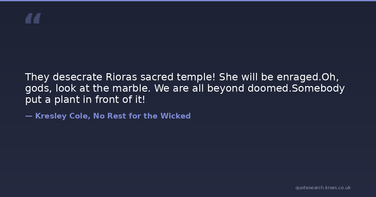 They desecrate Rioras sacred temple! She will be enraged.Oh, gods, look at the marble. We are all beyond doomed.Somebody put a plant in front of it!
