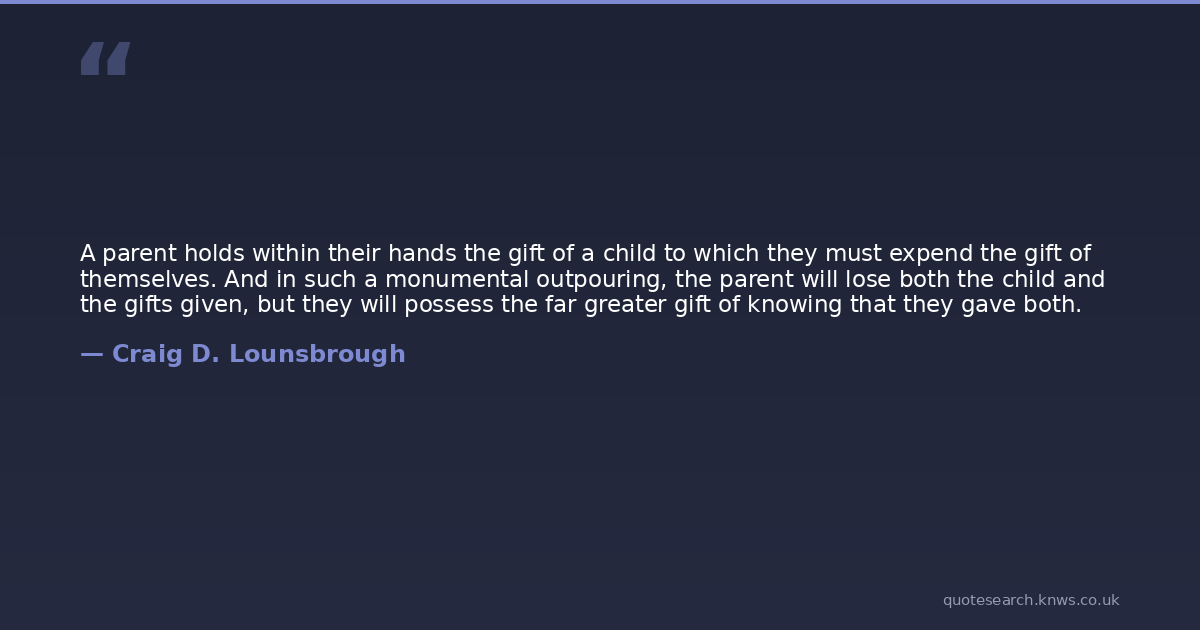 A parent holds within their hands the gift of a child to which they must expend the gift of themselves. And in such a monumental outpouring, the parent will lose both the child and the gifts given, but they will possess the far greater gift of knowing that they gave both.
